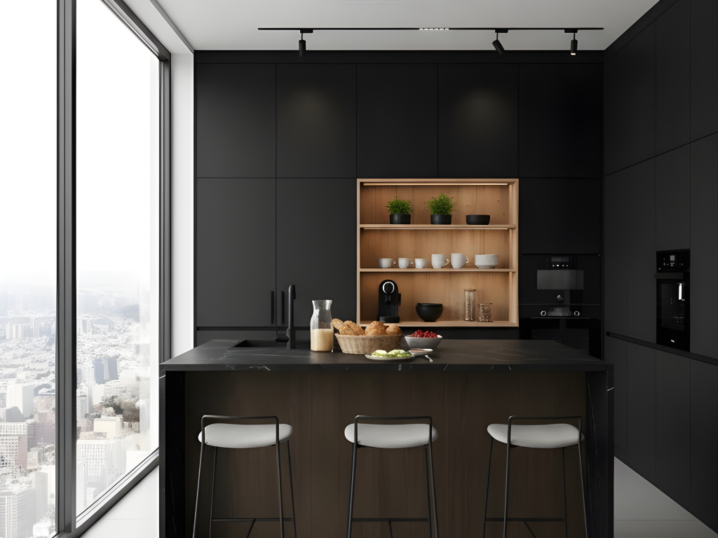 El desayunador puede concebirse como un rincón visible y decorativo, o bien ocultarse tras puertas abatibles para mantener el minimalismo. Esto lo hace versátil para distintos estilos visuales. - Aprovechamiento del espacio
