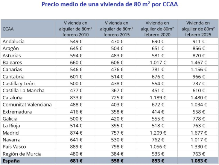 El alquiler marca máximos históricos en 2025