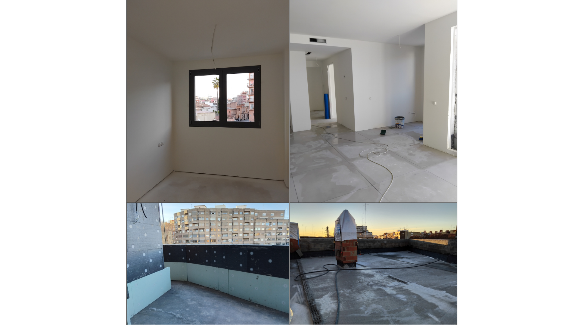 - Acabados Interiores: Tras completar la tabiquería, avanzamos en los revestimientos cerámicos y falsos techos. La orientación del edificio, con fachadas al Sur (Avda. Primado Reig) y al Norte (Plaza Mustacaf), permite ya apreciar la ventilación cruzada y el máximo aprovechamiento de la luz solar.