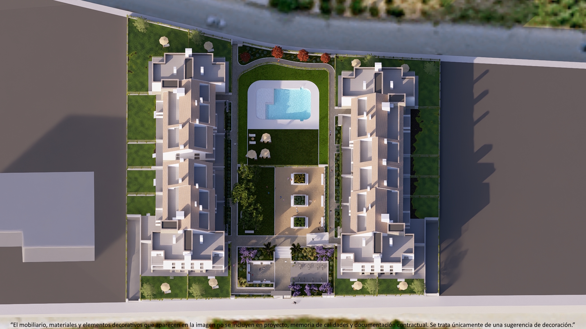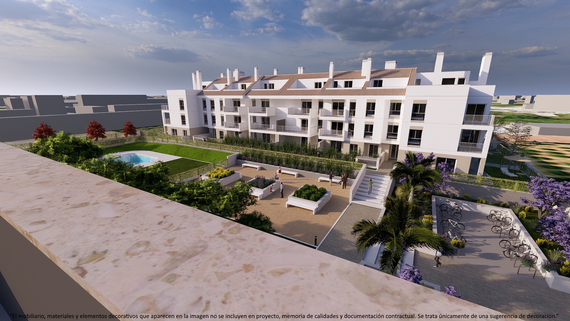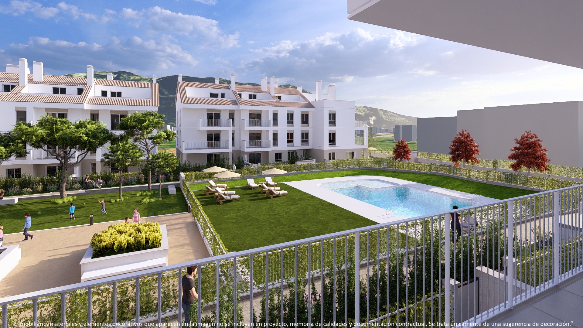 Residencial con piscina, grandes terrazas, espacios verdes y vistas al Montgó