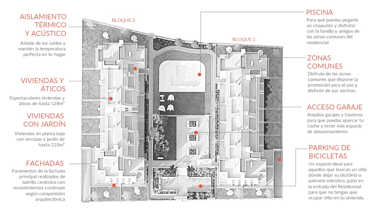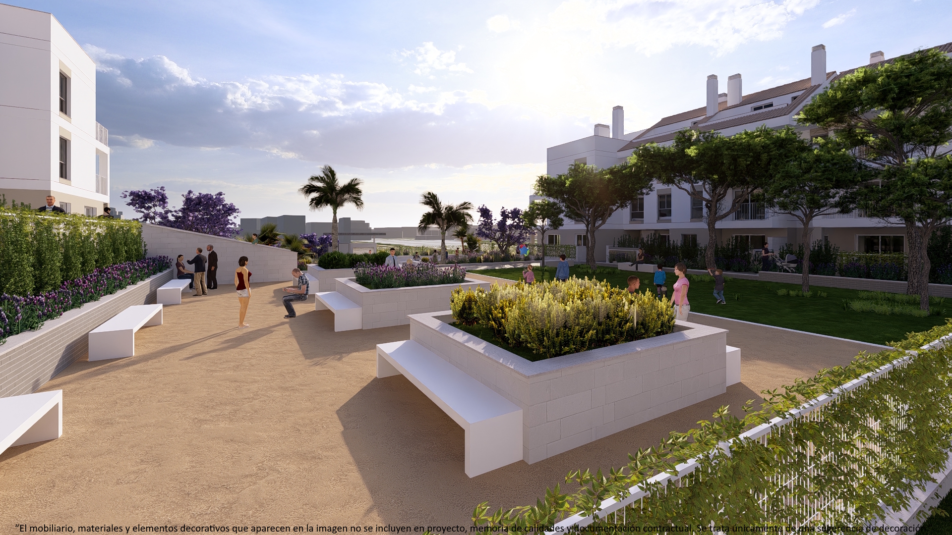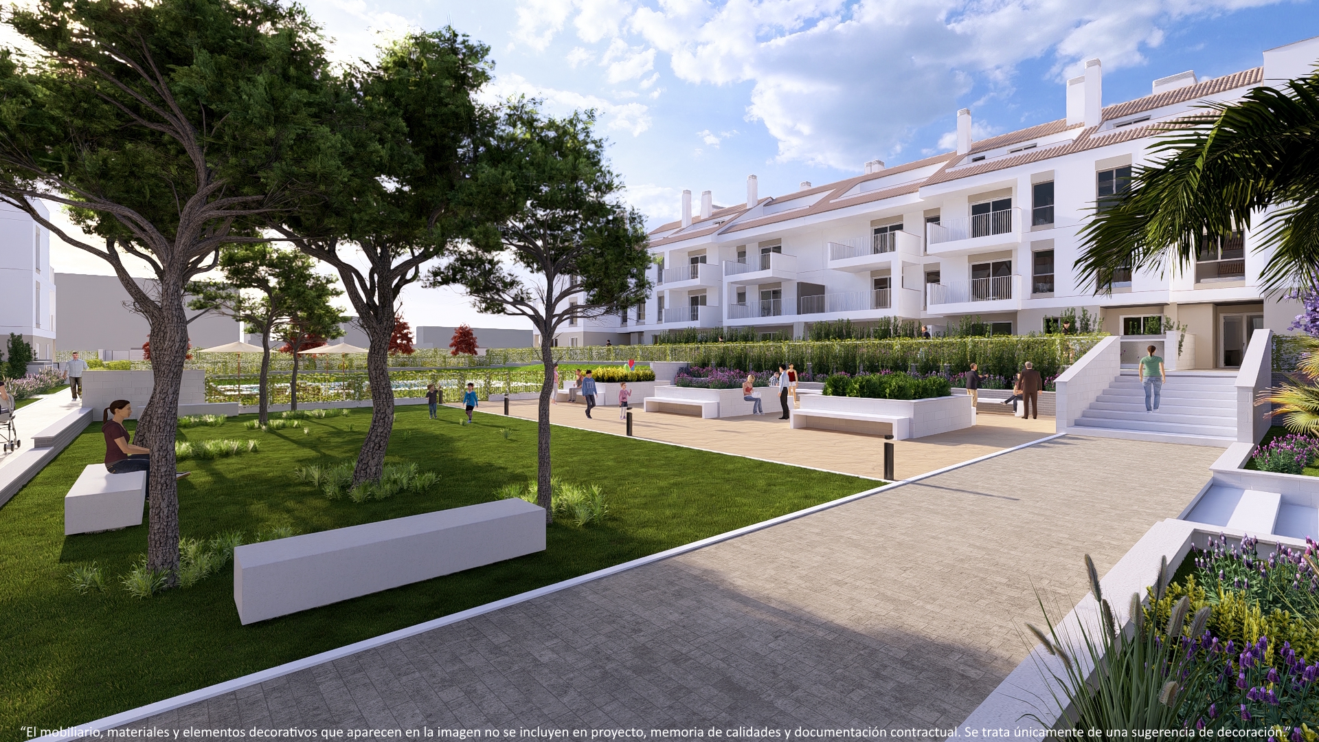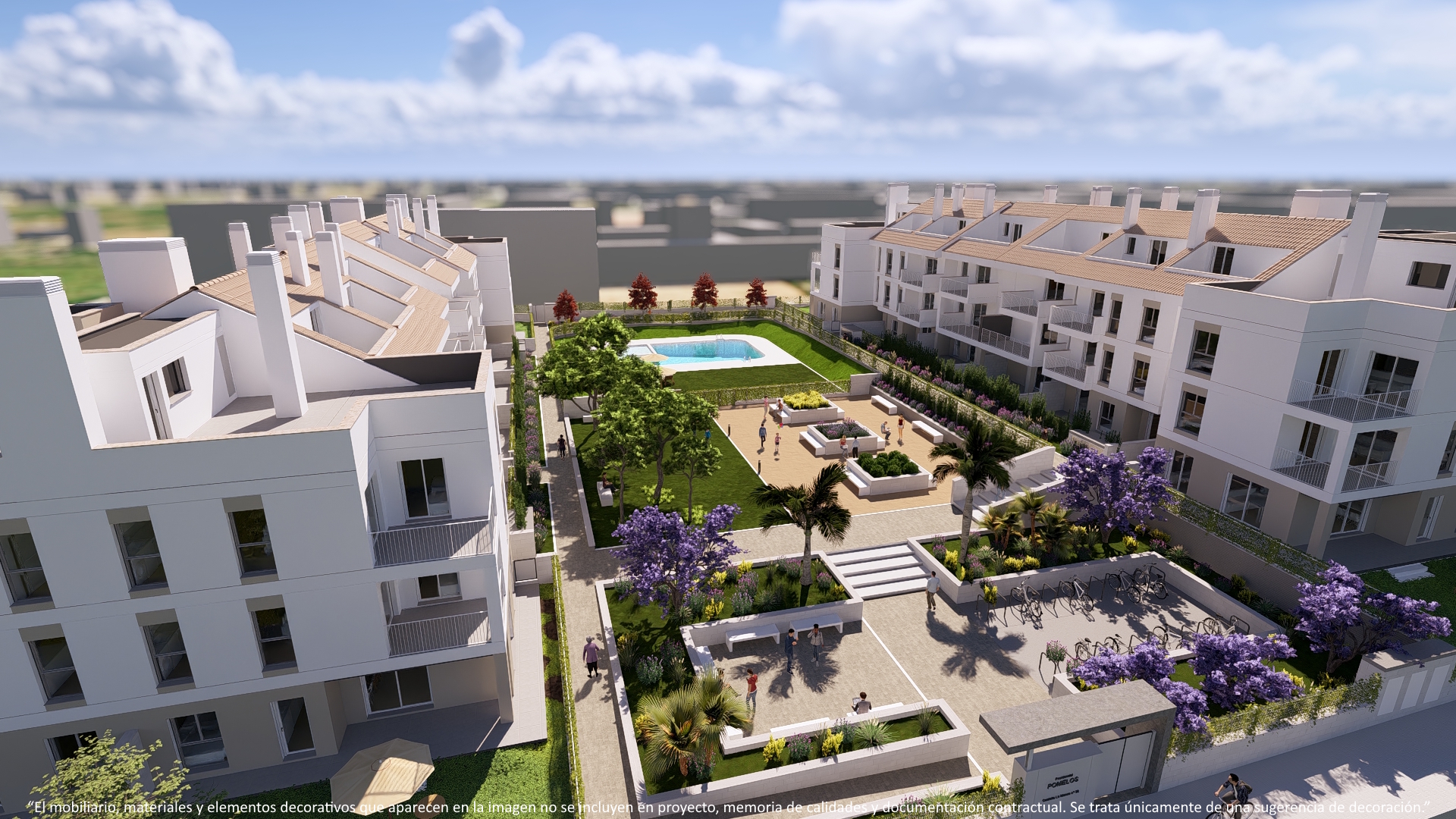 Residencial con piscina, grandes terrazas, espacios verdes y vistas al Montgó